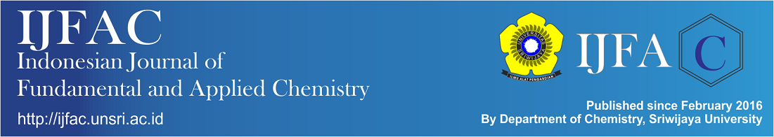 IJFAC by Department of Chemistry, Faculty of Mathematics and Natural Sciences, Universitas Sriwijaya is licensed under a Creative Commons Attribution-NonCommercial-ShareAlike 4.0 International License